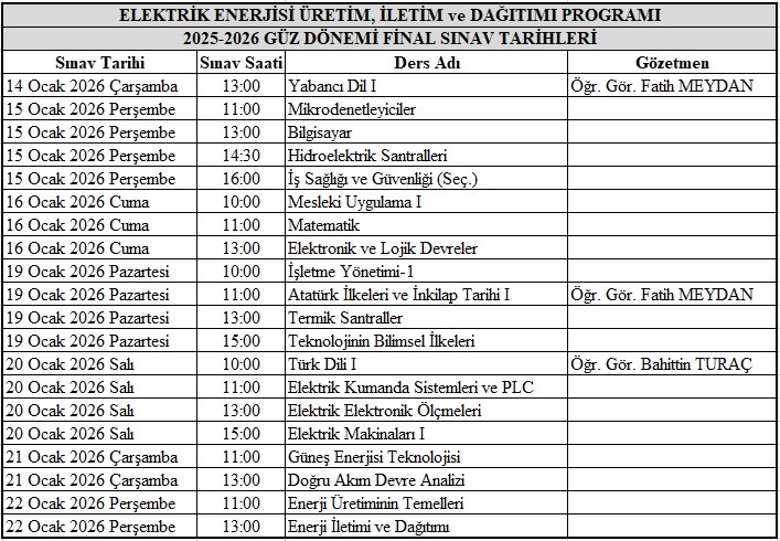 FİNAL SINAVI TARİHLERİ