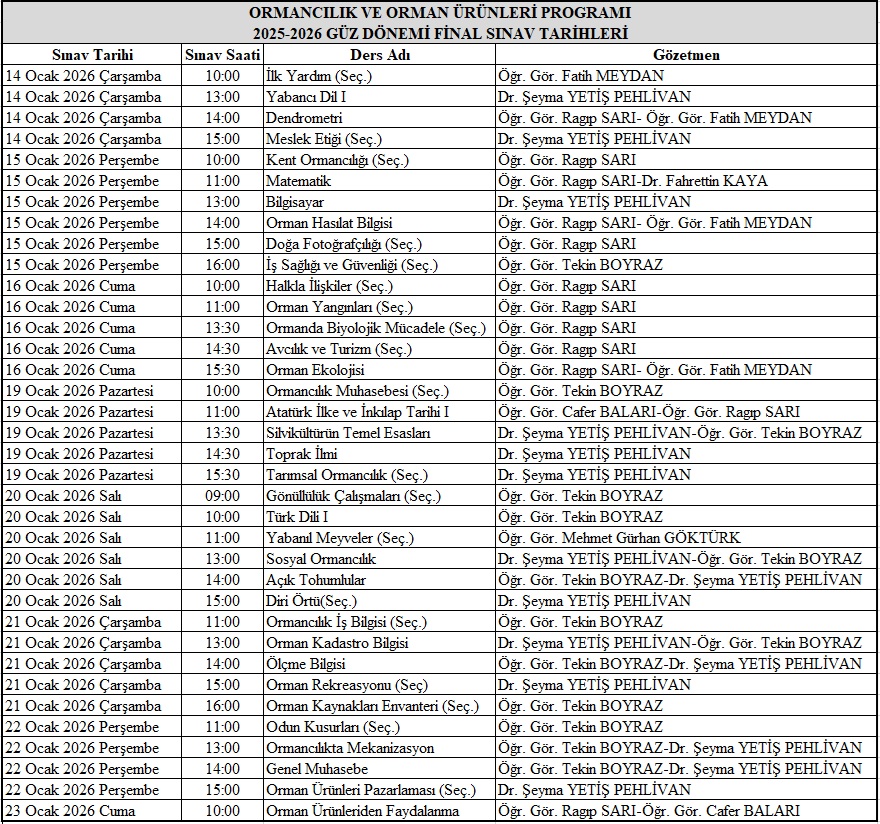15.01.2026 - Ormancılık ve Orman Ürünleri Programı