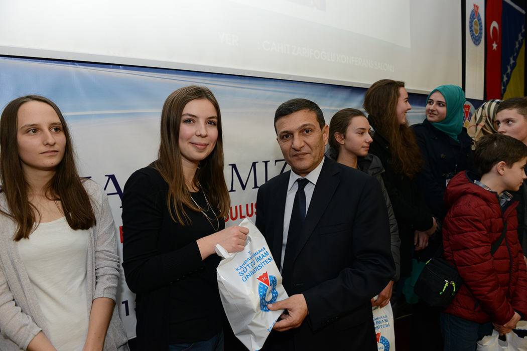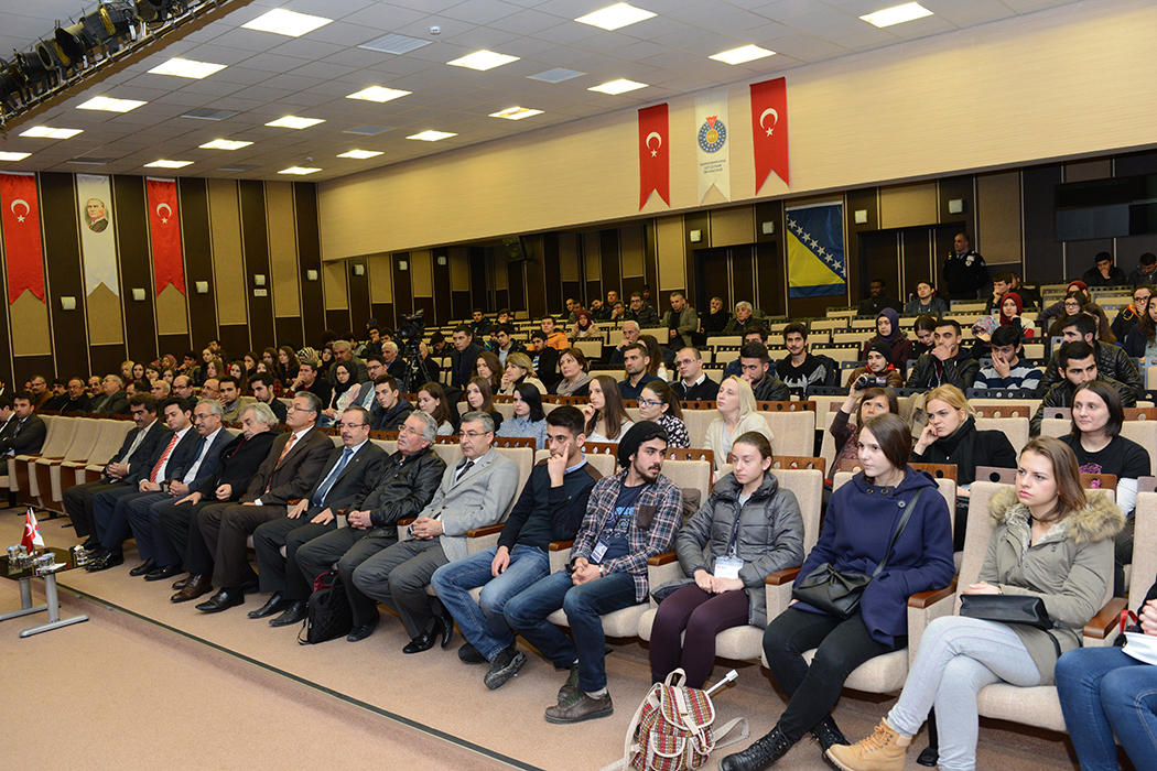 Cahit Zarifoğlu Konferans Salonu’nda düzenlenen programa, Bosna Hersek’ten gelen bir grup öğrenci ile birlikte Üniversitemiz Rektörü Prof. Dr. Durmuş Deveci, Rektör Yardımcıları Prof. Dr. Fatih Kıllı, Prof. Dr. Ramazan Güneşaçar, Prof. Dr. İsmail Bakan İktisadi ve İdari Bilimler Fakültesi öğretim görevlisi İsmail Göktürk, Bosna Gönül Elçisi Osman Nalbant ve çok sayıda öğrenci katıldı.