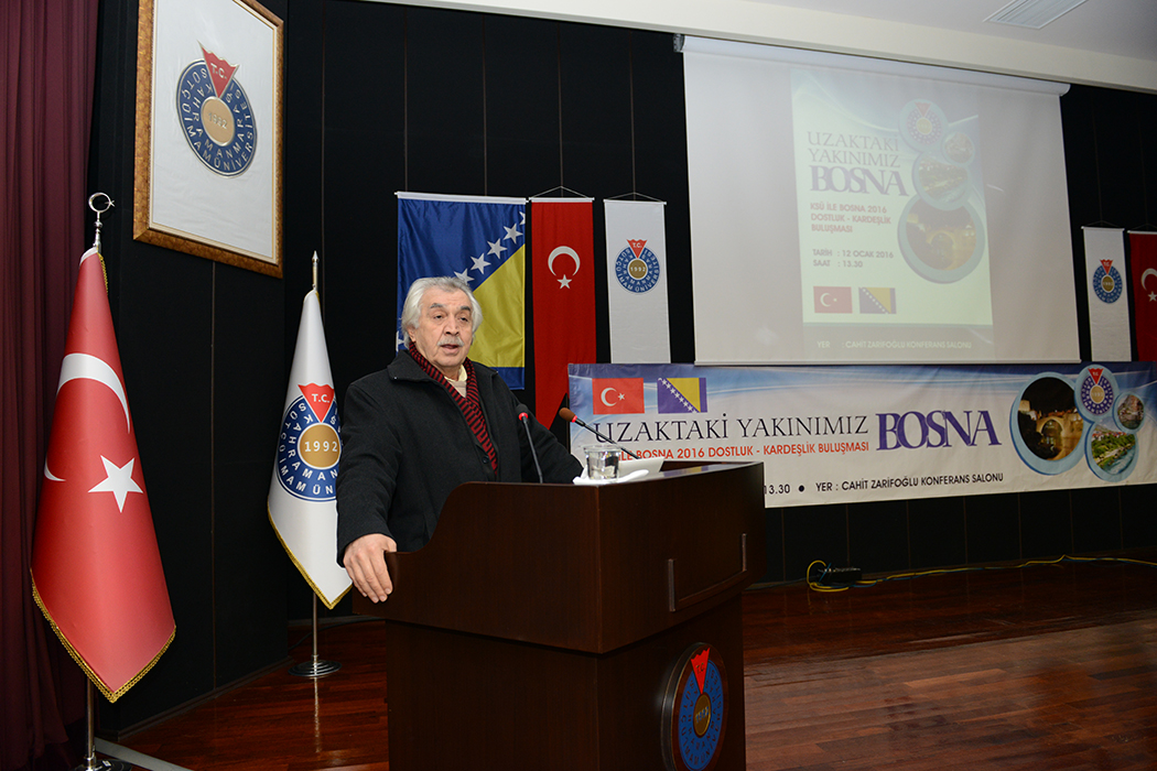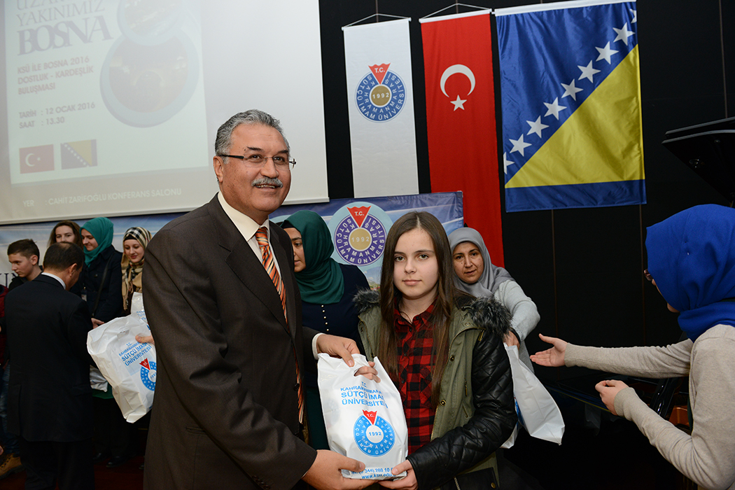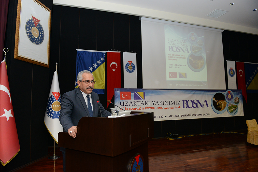 KSÜ ile Bosna 2016 Dostluk-Kardeşlik Buluşması programı açılış konuşmasını yapan Üniversitemiz Rektörü Prof. Dr. Durmuş Deveci, “Üniversite olarak elimizi Bosna’ya uzatıyoruz.” diyerek söze başlarken, 2016 yılını Bosna ile dostluk ve kardeşlik yılı ilan ettiklerini belirtti. Başta Bosna’daki üniversiteler olmak üzere diğer kurumlarla da işbirliği için kapıları açtıklarını belirten Deveci, Osmanlı’nın izinde oldukların söyleyerek Orta Asya’ya, Balkanlar’a sonra da Ortadoğu olmak üzere bu işbirliklerine devam edeceklerini söyledi. Bosna ile dostluk ve kardeşlik buluşması programına katılmak üzere Bosna’dan 30 kişilik bir grup öğrencinin de katıldığını belirten Deveci, “Azerbaycan ile yaptığımız işbirliği gibi Bosna ile de yapacağımız işbirliği ve kurduğumuz gönül köprüsü sadece bir yıl ile sınırlı değildir.” şeklinde konuştu.