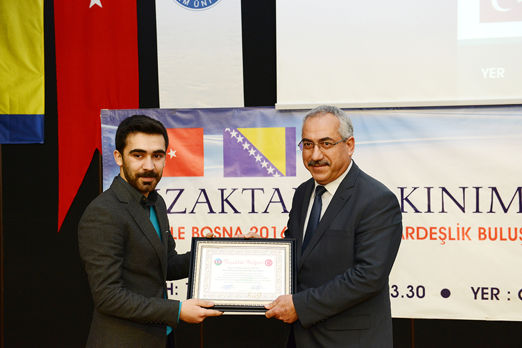 Programda 2015 yılının Azerbaycan dostluk yılı ilan edilmesi münasebetiyle Azerbaycan Eğitim, Kültür ve Dayanışma Derneği tarafından Rektör Prof. Dr. Deveci ‘ye teşekkür belgesi takdim edilirken, program, Türk müziği dinletisi ve Bosnalı öğrencilere hediye verilmesi ile son buldu.
