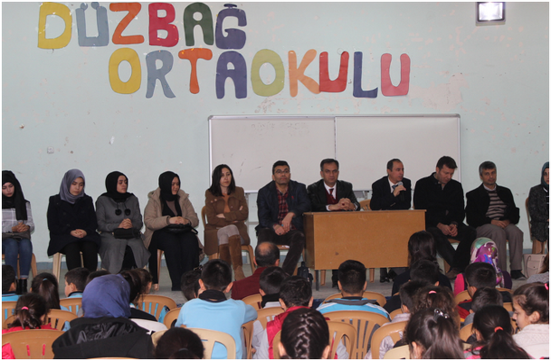 Okuma kitapları ve spor malzemelerini Düzbağ Ortaokulu Müdürü Esma Borazan’a teslim eden üniversitemiz ekibi çeşitli derslere konuk oldu. Düzbağ Ortaokulu Okul Aile Birliğinin katkılarıyla düzenlenen öğle yemeğinde okulda görevli çeşitli branşlardaki öğretmenlerle bir araya gelerek sohbet eden öğretim üyesi ve öğrenciler son olarak Düzbağ Ortaokulu Spor Salonunda gerçekleştirilen söyleşiye katılarak öğrencilere ilerideki öğrenim şartları ve üniversite hayatı ile ilgili önerilerde bulundular.