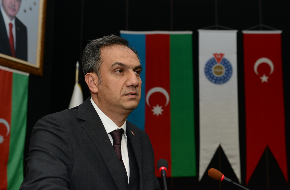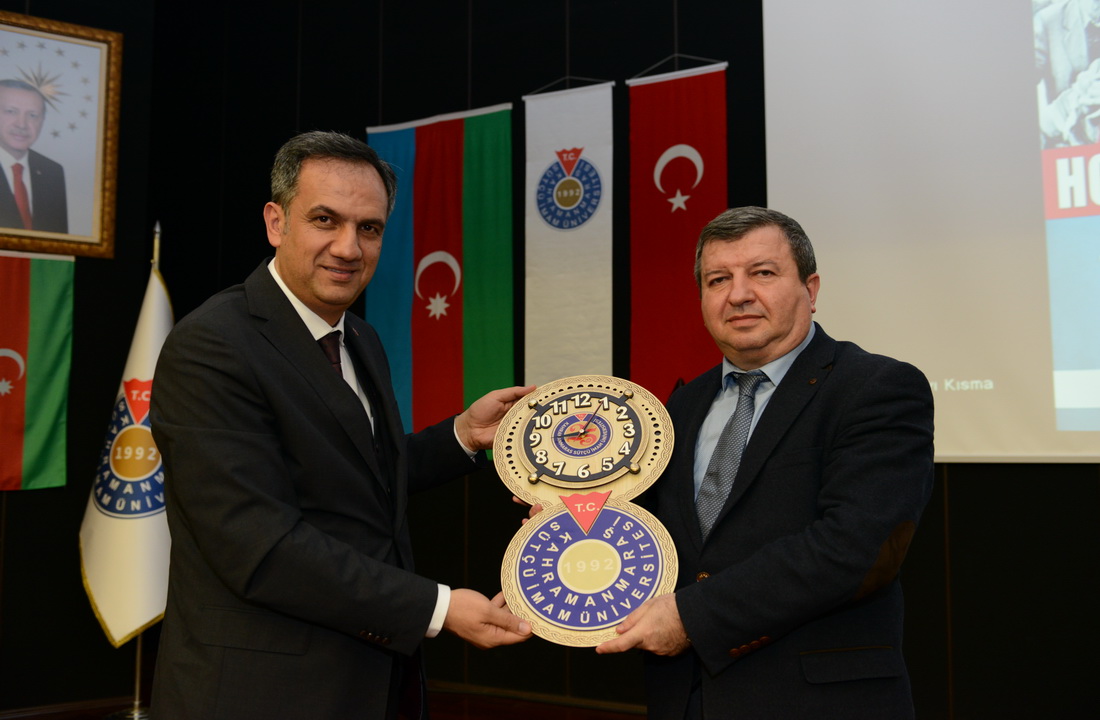 Konferans sunumunun ardından Rektör Yardımcısı Prof. Dr. İbrahim Solak tarafından Doç. Dr. Toğrul İsmayıl’a hediye takdim edildi.