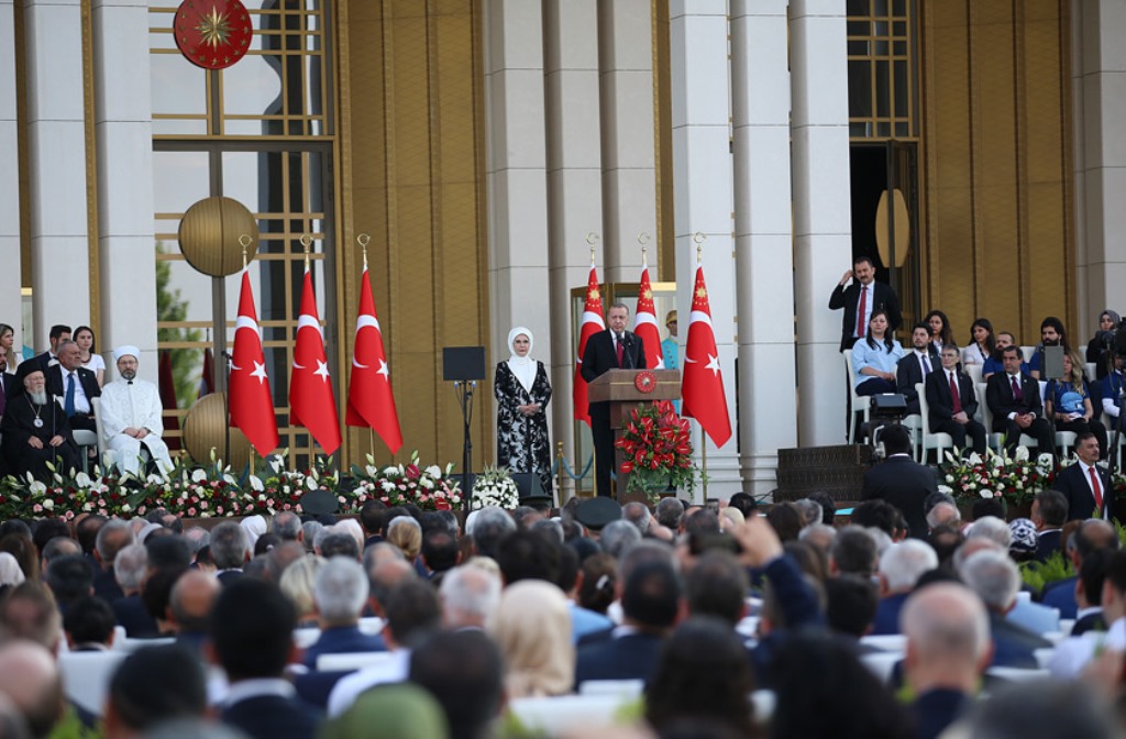 “Biz paylaşmanın bereketine inanan, dostlarıyla, kardeşleriyle birlikte yol yürümekten, onlarla birlikte kazanmaktan memnuniyet duyan bir milletiz. Dünyanın her anlamda bir yapılanma sürecinde olduğu günümüzde bu yaklaşımın çok daha anlamlı ve değerli olduğunu düşünüyoruz. Hiçbir ülkenin ve hiçbir toplumun vasiye, vesayete, mürebbiyeye, kurtarıcıya ihtiyacı olmadığına, insanlığa lazım olan tek şeyin adalet ve iş birliği olduğuna inanıyoruz.” diyen Cumhurbaşkanı Erdoğan, yeni dönemde Türkiye’nin, demokrasiden temel hak ve hürriyetlere, ekonomiden büyük yatırımlara kadar her alanda daha ileri gideceğini ifade etti.