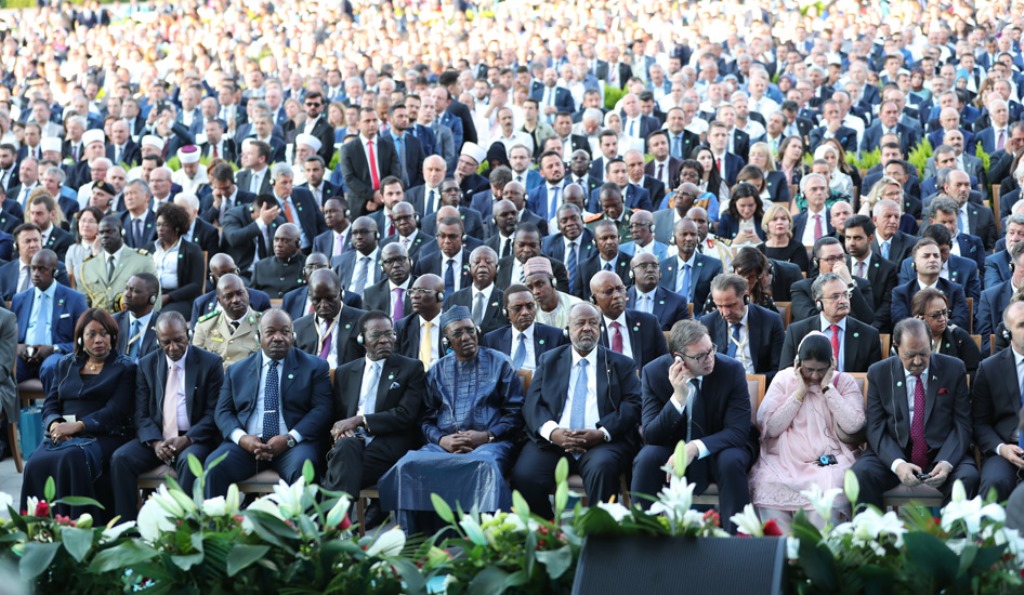 22 Devlet Başkanı'nın yanı sıra birçok ülkeden devlet başkan yardımcıları, parlamento başkanları ve başbakanları ile altı uluslararası örgütün temsilcisinin de iştirak ettiği törende Cumhurbaşkanı Erdoğan, bir konuşma yaptı.