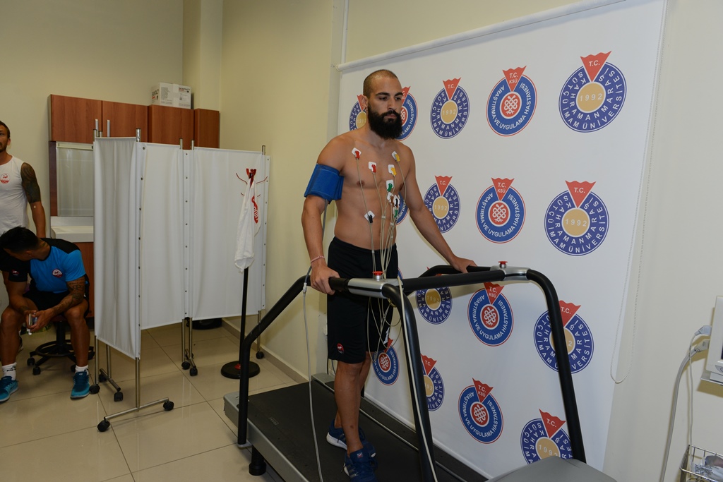 Kahramanmaraşspor futbolcuları ve teknik heyet Kahramanmaraş Sütçü İmam Üniversitesi (KSÜ) Sağlık Uygulama ve Araştırma Hastanesinde (Tıp Fakültesi Hastanesi) sağlık kontrolünden geçti.