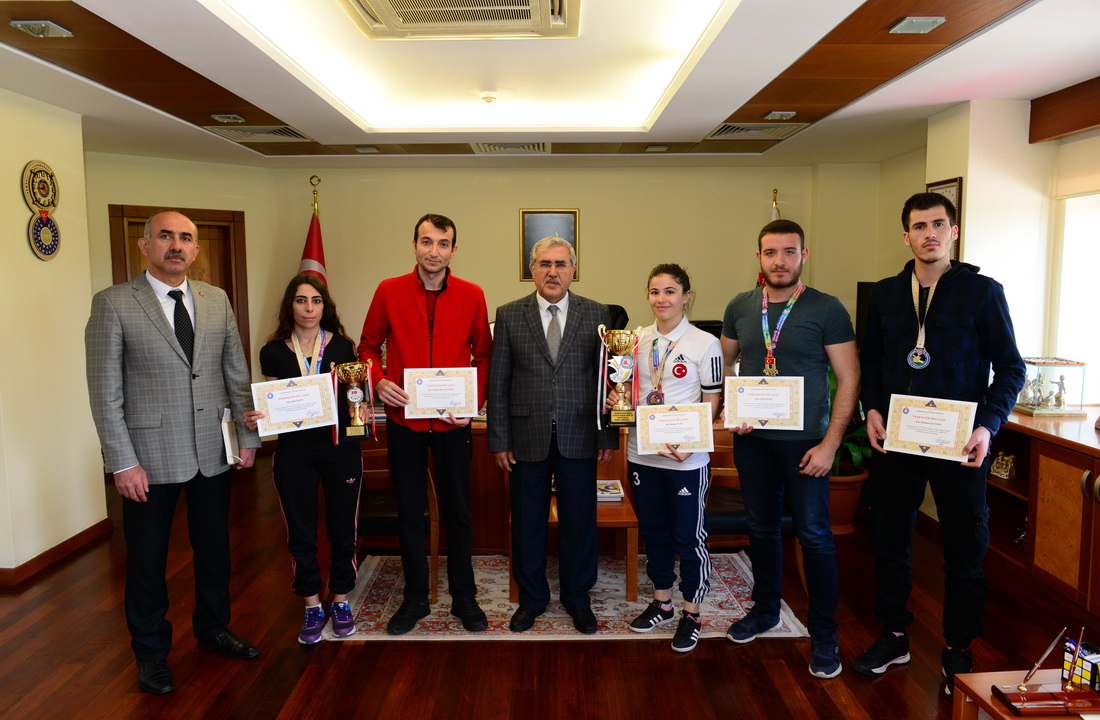Rektör Can, Üniversitelerarası Türkiye Şampiyonasından 4 Madalya İle Dönen KSÜ Wushu Kungfu Takımını Makamında Kabul Etti